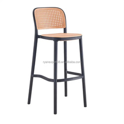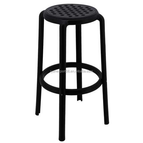 Silla taburete de bar de plástico negro con altura de mostrador de diseño hueco elegante