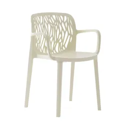 Elegante Silla de comedor de plástico de polipropileno beige apilable de nuevo diseño con reposabrazos
