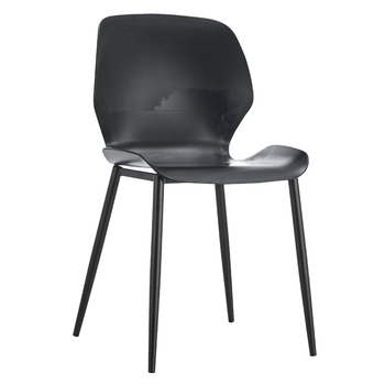 Silla de comedor ergonómica de plástico polipropileno negro con patas metálicas