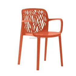 Elegante Silla de comedor de plástico de polipropileno naranja apilable de nuevo diseño con reposabrazos
