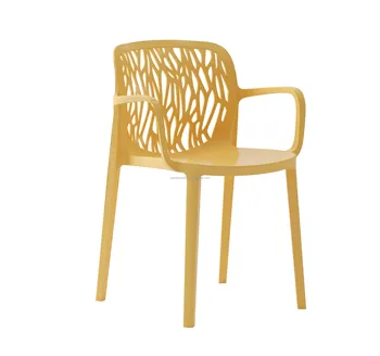 Silla de comedor de plástico de polipropileno mostaza apilable de nuevo diseño elegante con reposabrazos