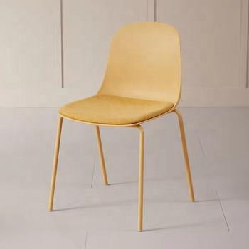 Chaise de salle à manger élégante et confortable en plastique polypropylène jaune sans bras avec coussin